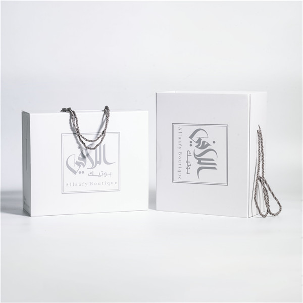 Silver Foldable Rigid Gift Box with Handle & Debossed Logo