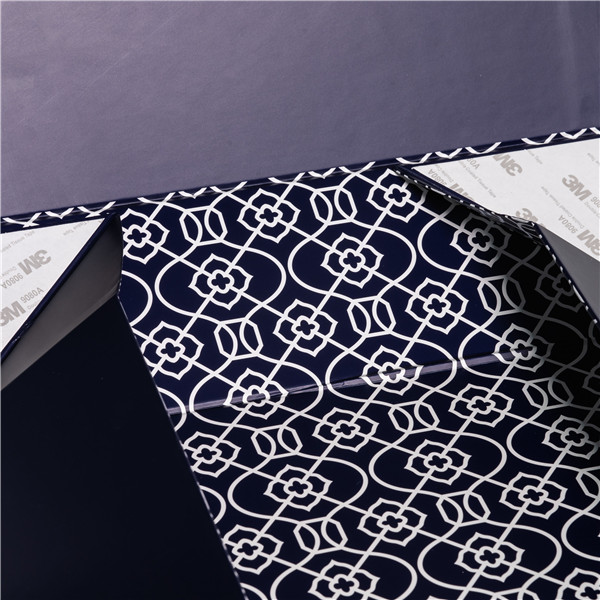 Material | Rigid Greyboard, Navy Blue Art Paper, Custom Pattern Inner Lining |